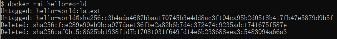 $ docker rmi hello-world