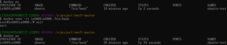 $ docker run -itd --name ubuntu-test ubuntu /bin/bash